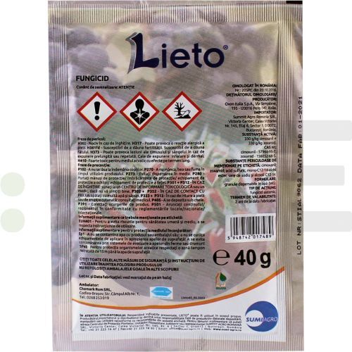 Lieto este un fungicid cu actiune sistemica locala curativa cat si de prevenție.